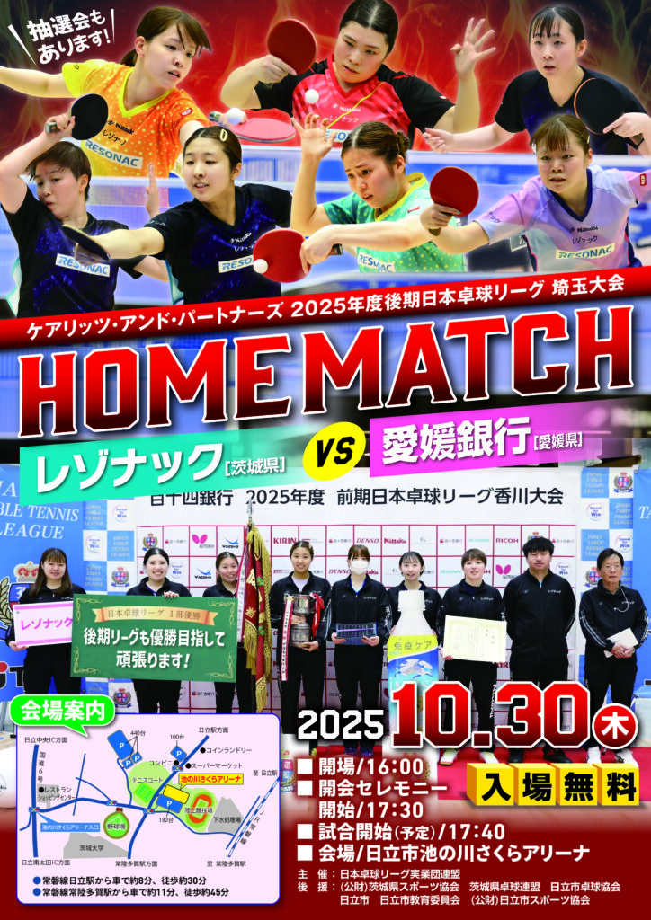 ケアリッツ・アンド・パートナーズ 2025年度後期日本卓球リーグホームマッチについて