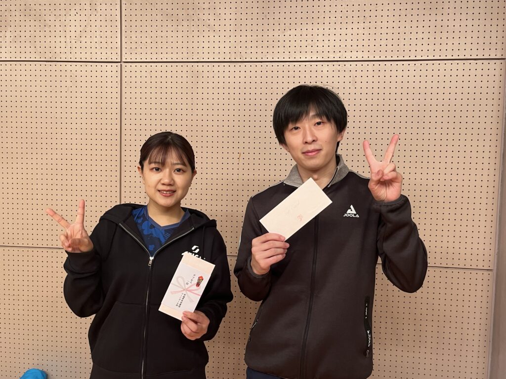 102回Sリーグ混合ダブルス3S部優勝者 齋藤秀人選手(JOOLA IBRK)・石川清美(JOOLA IBRK)